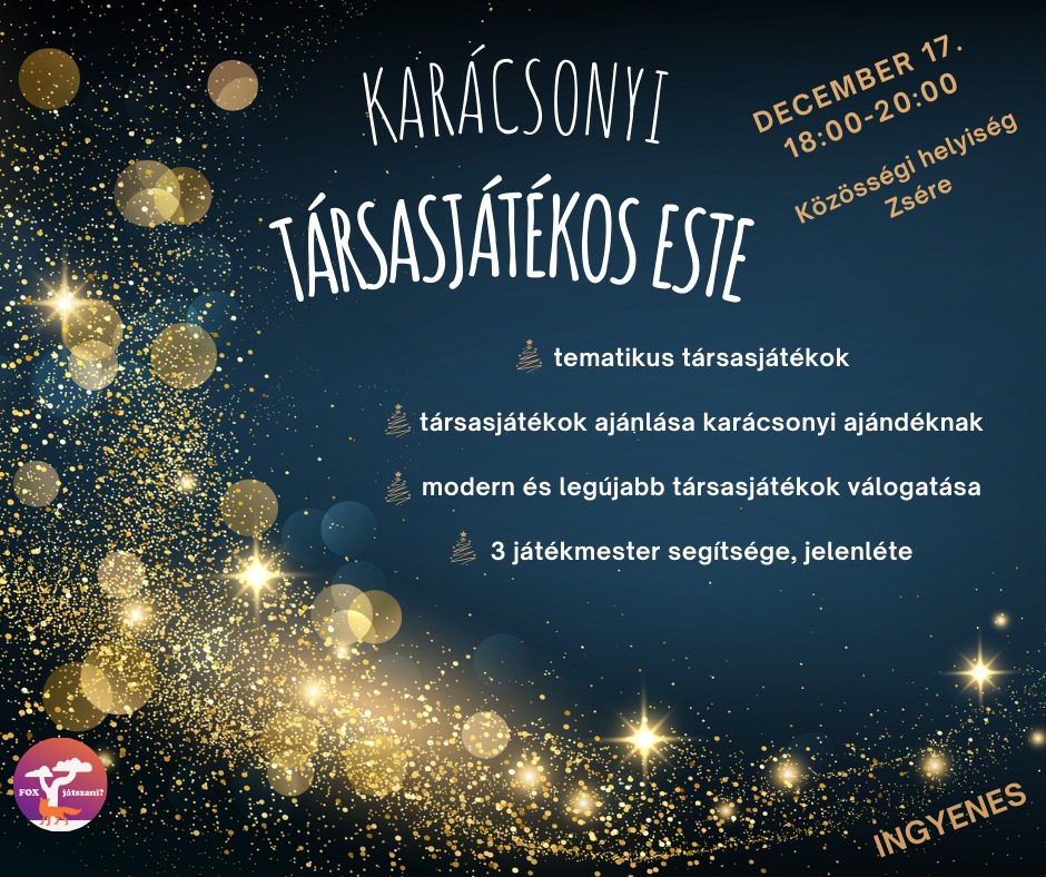 Szeretettel meghívunk mindenkit, gyerekeket és felnőtteket egyaránt a KARÁCSONYI TÁRSASJÁTÉKOS ESTÉRE, melyre 2024. december 17-én (kedden) kerül sor Zsérén, a kultúrház melletti közösségi helyiségben.