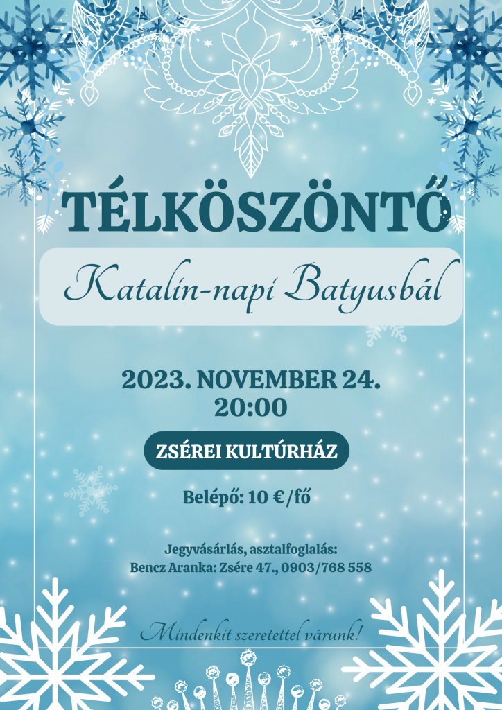 Belépőjegyek kaphatók Bencz Arankánál: Zsére 47., 0903/768 558.