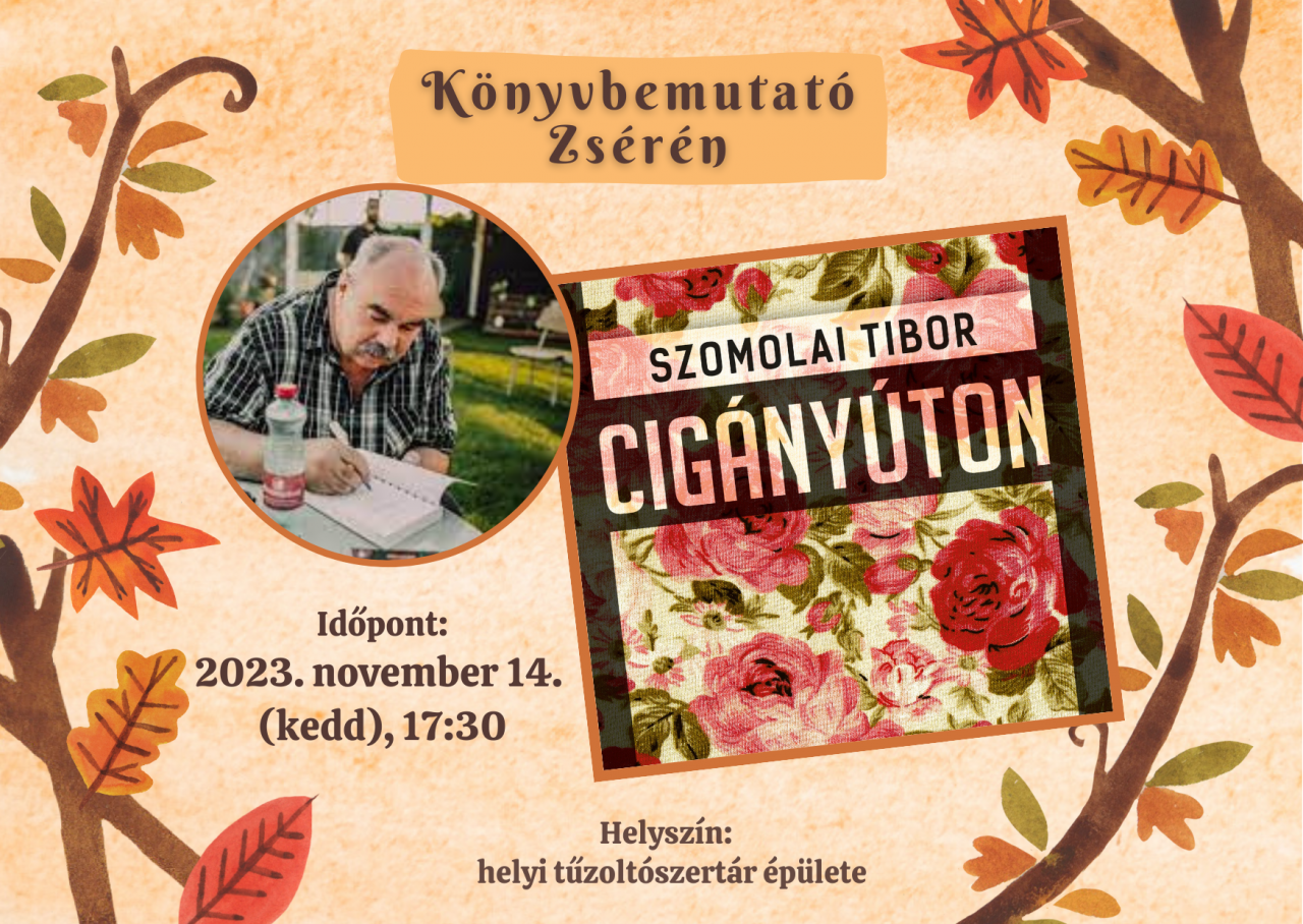 Zsére Község Önkormányzata tisztelettel meghív minden kedves érdeklődőt Szomolai Tibor Cigányúton című könyvének bemutatójára. A népszerű író élvezetes módon mutatja be és dedikálja legújabb művét.