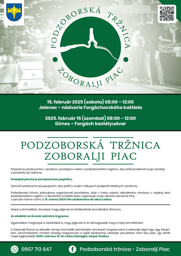 A következő ZOBORALJI PIAC Lédecen kerül megrendezésre, 2025. március 15-én.
