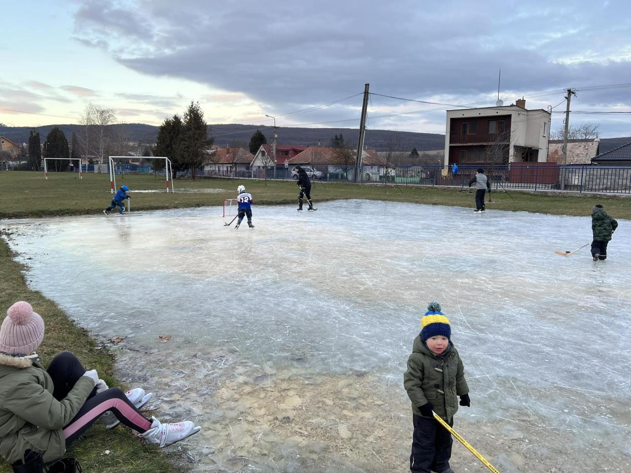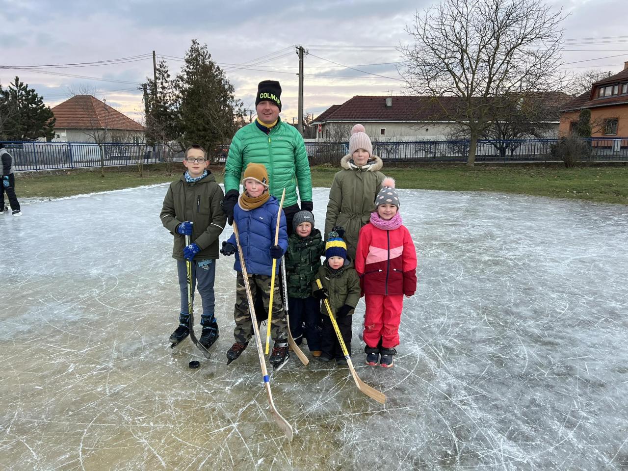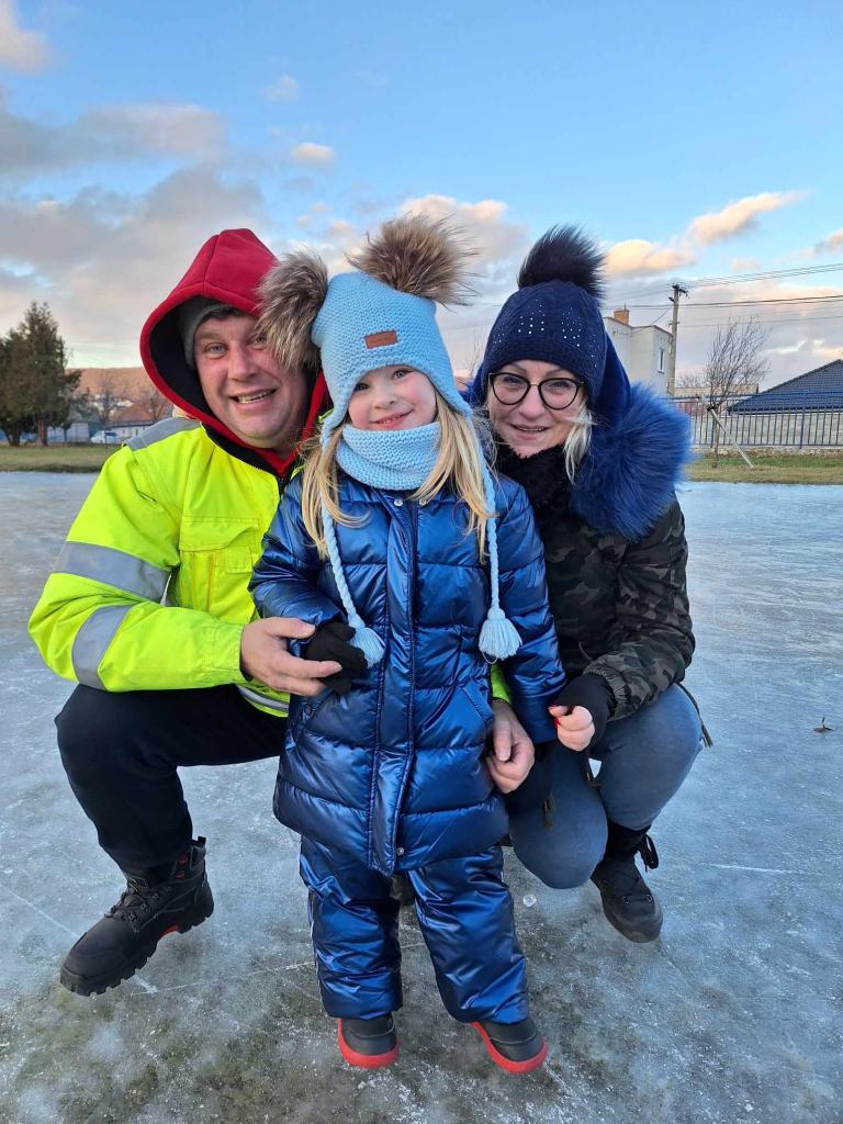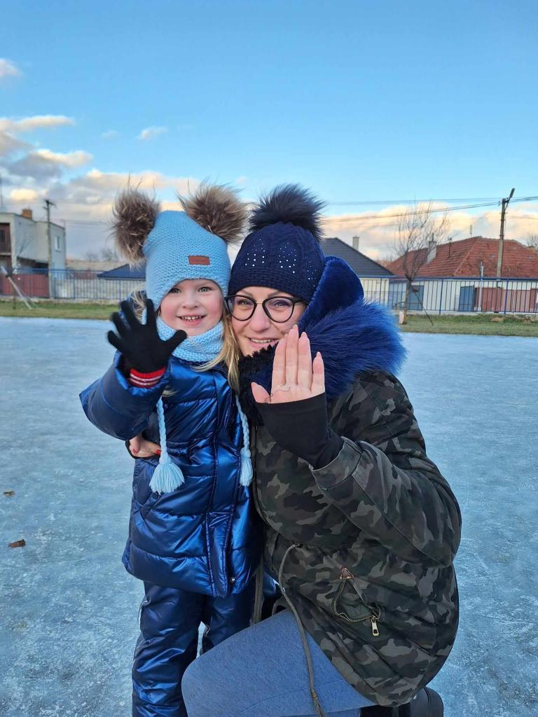 Vidám korcsolyázás a zsérei szabadidőközpontban.