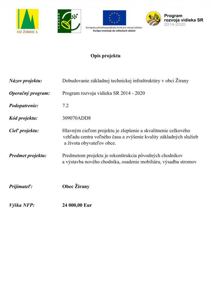 DOBUDOVANIE ZÁKLADNEJ TECHNICKEJ INFRAŠTRUKTÚRY V OBCI ŽIRANY 2022