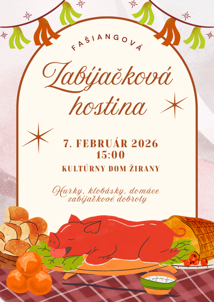 Srdečne Vás pozývame na FAŠIANGOVÚ OCHUTNÁVKU ZABÍJAČKOVÝCH ŠPECIALÍT, ktorá sa uskutoční dňa 7. februára 2026 (sobota) od 15:00 hod. v kultúrnom dome v Žiranoch.