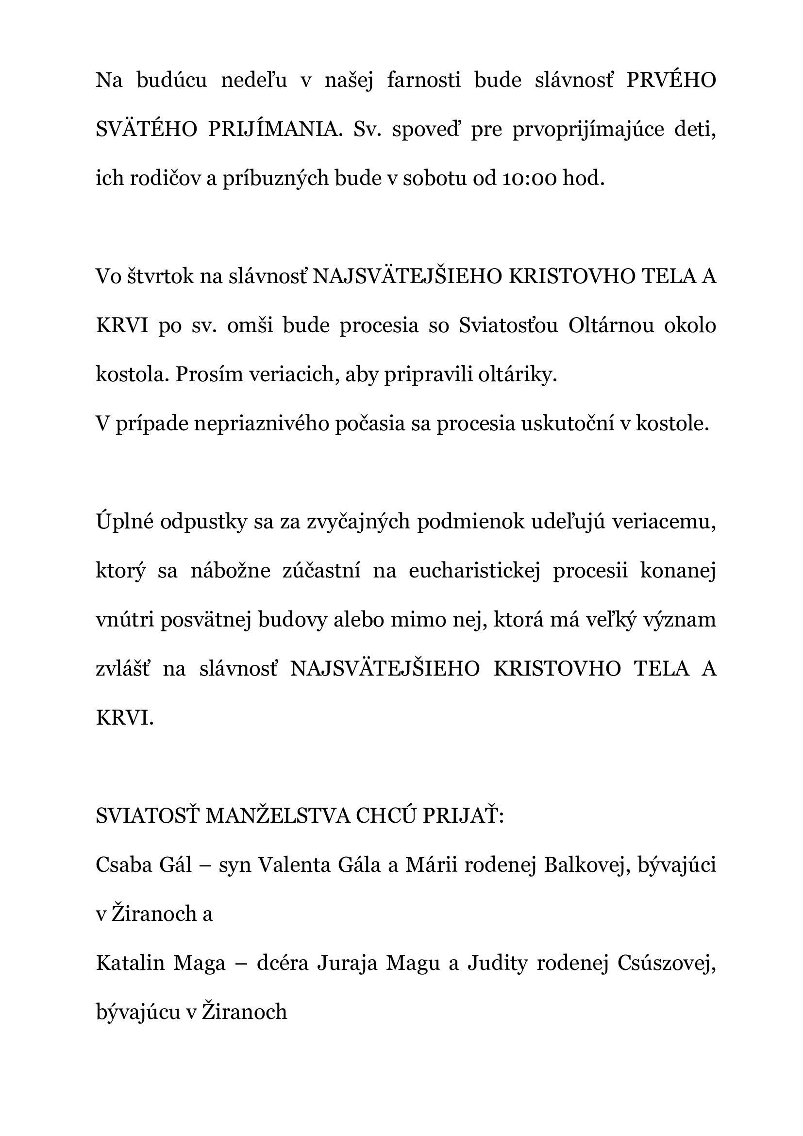 Rímskokatolícka cirkev, Farnosť Žirany 951 74 Žirany 145 tel.: 037/631 82 21 e-mail: zirany@fara.sk