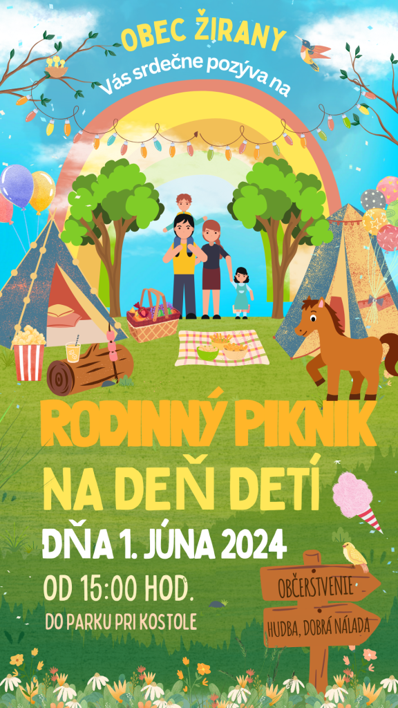 Samospráva obce Žirany Vás srdečne pozýva na rodinný piknik pri príležitosti MEDZINÁRODNÉHO DŇA DETÍ.