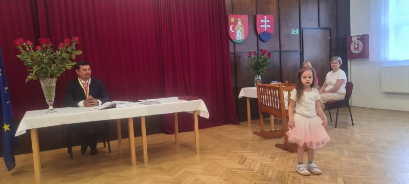 Po slávnostnom príhovore zablahoželal pozvaným rodičom, a mamičkám odovzdal finančný príspevok, pamätný list i ružu. Prítomní rodičia detí sa tradične podpísali do obecnej kroniky.