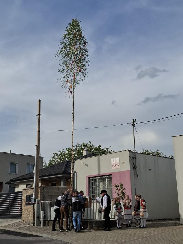 Krásny, farebný máj sa už týči aj v našej obci. Pri jeho stavaní bolo veselo.