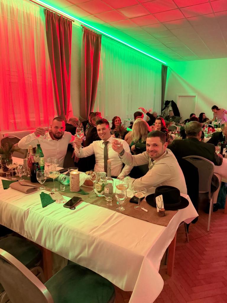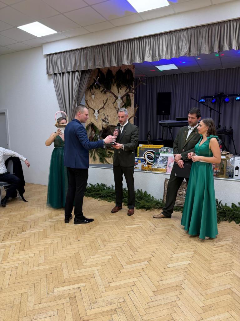 Prichádzajúcich hostí vítali slávnostné tóny lesníc trubačského tria. Muži prišli nielen v spoločenských oblekoch, ale aj v odevoch ladených v poľovníckom štýle. Ples otvoril svojim príhovorom predseda združenia, pán František Szórád. O dobrú zábavu sa postarali fantastickí hudobníci, Tomi Horváth a Drahoš Bango. Krásna výzdoba tanečnej sály tematicky prispela k atmosfére plesu. Počas večera sa podľa starej poľovníckej tradície konal slávnostný akt "pasovanie lovca" a nechýbala ani bohatá tombola. Obrovské poďakovanie patrí sponzorom plesu, skvelému organizačnému tímu a šikovnému personálu, ktorí sa počas celého podujatia starali o maximálnu spokojnosť hostí. Dobrá nálada, príjemná atmosféra a plný parket zabávajúcich sa ľudí nasvedčoval tomu, že poľovnícky ples v Žiranoch sa opäť vydaril! Tešíme sa na ďalšie ročníky!